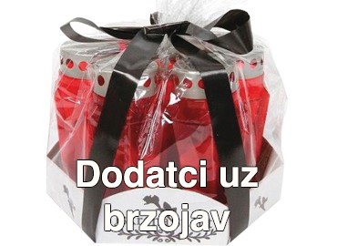 Ukoliko želite, uz vaš brzojav sućuti možete dostaviti i prigodni dodatak odnosno dodatke. Npr: Lampione, ruže, kipić anđela...